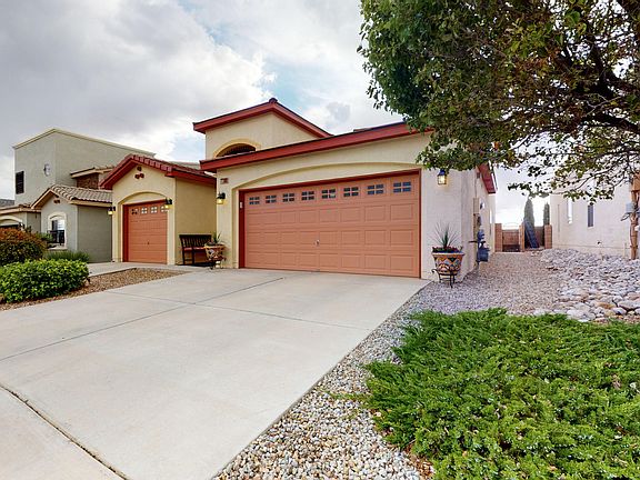 Have you been looking for that incredible deal in Rio Rancho? This home has it all the custom features you could ask for. As you walk in to the secure courtyard there is a place for entertaining and access to the 3rd car garage. Inside you will find high ceilings with windows above for natural light, beautiful wood laminate flooring, and fireplace. In the kitchen there is no shortage of cabinet space, large kitchen island with corian counter tops and large area for dining table. One of the best features is the Maser Bedrooms is downstairs with plenty of room to fit a king size bed and large furniture. Separate bathtub and shower with walk-in closet and double sinks. Upstairs you can use the loft for an office, play room or hobby room. 2 large rooms with double sinks in bathroom.