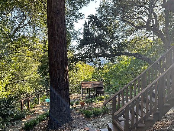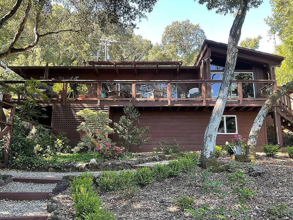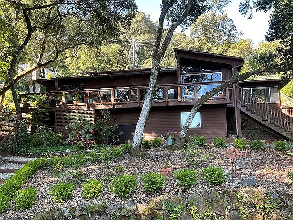 Pre MLS listing. Stunning 1.39 acre estate on a private street with 4 other homes. You’ll never hear traffic or neighbors, only the creek running along the hot tub deck. Top rated Orinda school district, Wagner Ranch Elementary school is 7 minutes away, OIS, and Miramonte High School, all rated 9 and 10. This historic remodeled home has a huge vaulted ceiling living room and walk out deck overlooking Orinda. The house is nestled amongst beautiful coastal oaks and a madrones, visible from each window. Private hot tub deck off the master bedroom. Ideal private office overlooking the creek and yoga and BBQ area. Grand living room is built of solid redwood anchored by a real rock fireplace. Remodeled cook’s kitchen features marble countertops, white tile backsplash, and stainless appliances. Hardwood floors and modern large tile throughout the home. The vineyard was planted in 2018 and is producing terrific Syrah and Zinfandel wine. Last years production was 150 bottles of divine wine. Owner also built a large terraced fruit and vegetable garden with many planting beds, as well as lemon and lime trees. Productive chicken coop in lower yard. Two driveways can park 4 cars. Room for RV storage, and there is room for an ADU if desired. Excellent sun exposure for solar if desired. Charge point 240V EV car charger is installed for easy car charging. Workshop and office below the deck is in addition to the 1678 square footage. Come see it before we list on MLS.