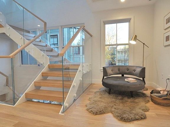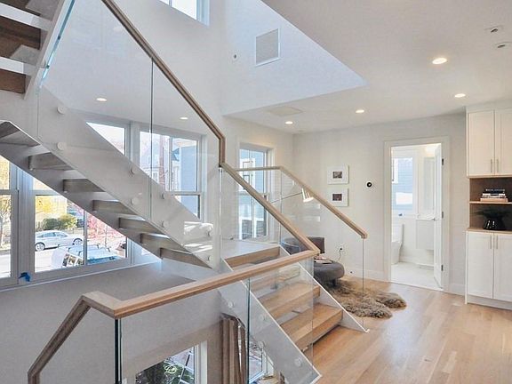 Magnificent newly built contemporary home, with state of the art finishes, and amazing outdoor space. Dramatic architectural details inside and out, including floating staircase and peninsula gas fireplace. First floor has open floor plan with living/dining overlooking the private garden. There's also a separate den/home office, half bath and foyer, both with radiant floors. Sleek kitchen with custom Italian cabinetry, Thermador appliances, and large island with seating. Second floor has a fabulous master bedroom suite with luxurious bath and balcony, plus another bedroom and full bath. Third floor has 2 more bedrooms and a full bath plus storage. The lower level has another bedroom, full bath and family room, plus a laundry room and additional storage. Incredible natural light throughout this spacious home, privately tucked away from the street, surrounded by mature trees, all conveniently located in the heart of Mid-Cambridge. Parking for 2 cars. No smoking. Small pet might be considered on a case by case basis. Utilities to be paid by tenants. Broker fee of one month rent paid by tenants. Last month's rent due at lease signing. Assigned parking