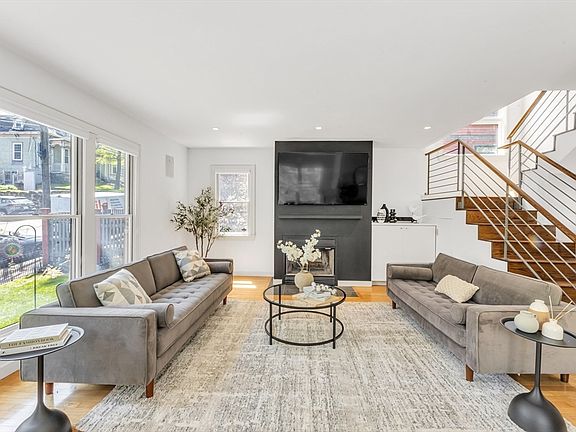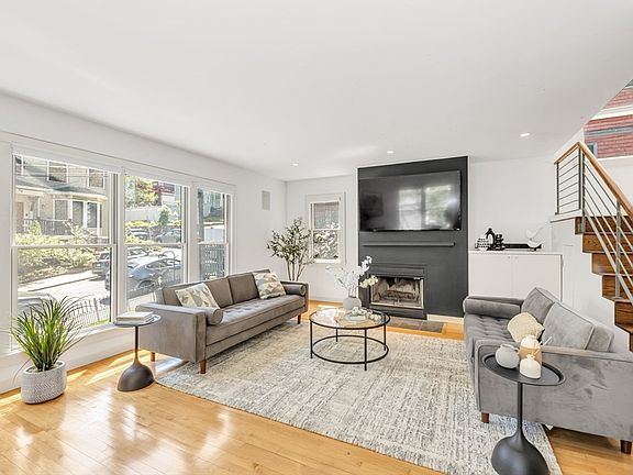 Discover your dream home in the heart of Jamaica Plain! This stunning residence boasts a versatile 3+ bedroom (easily 4), 2-bath layout that blends modern elegance with timeless charm. Walk into a bright, airy open floor plan adorned with gleaming hardwood floors, skylights, and a sleek wood-burning fireplace. The space flows perfectly. Bedroom and bath on the main level, along with a family room. Granite kitchen welcomes gatherings with an oversized island in the center. Cathedral ceilings over the sophisticated stairway with a massive window filling the space with the outside. A bonus office, large bedroom and ultra-chic bathroom!! Laundry on 2nd floor. Savor summer evenings on two private decks or the fabulous back patio, ideal for gatherings. Grill enthusiasts will love the natural gas line for year-round outdoor cooking—no propane needed! Plus enjoy the convenience of side by side parking in the driveway. Minutes from the Orange line, 39 bus, the pond and easy access to Longwood.