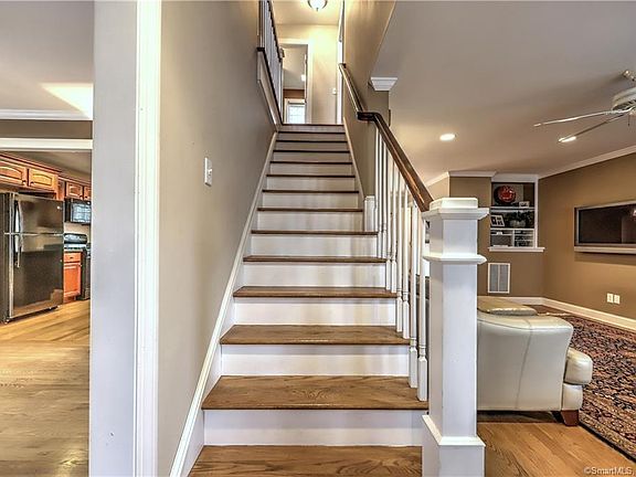 Functionally designed for today's lifestyle, this free-standing condo offers modern amenities throughout. Awesome kitchen with maple cabinetry, center island and dining area. Formal living room with fireplace, built-in shelving and recessed lighting. Generously-sized dining room with chair rail and crown molding. Hardwood throughout main level. Enjoy restful nights in the spacious master bedroom with vaulted ceiling, 2 closets (one walk-in), full bath and a unique "wall fireplace" which is aesthetically pleasing and generates heat. Two guest bedrooms complete the second level. Lower level offers comfortable family room along with plenty of storage. Televisions in living room and green bedroom remain with sale. SMART HOUSE with wi-fi based security system. Convenient North Stratford location.