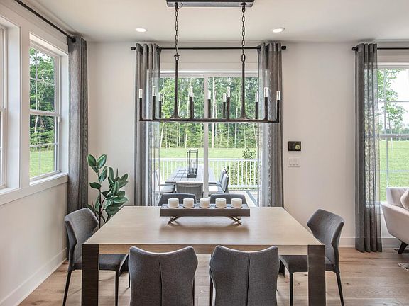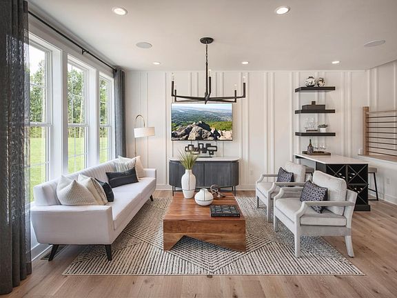 A soaring two-story great room distinguishes the Alinbill's main living space, overlooking an intimate casual dining area with desirable rear yard access. The well-appointed kitchen is complete with a large center island with breakfast bar, and wraparound counter and cabinet space. The stunning primary bedroom suite is highlighted by an ample walk-in closet and deluxe primary bath with dual-sink vanity, large luxe shower with drying area, and private water closet. Secondary bedrooms feature sizable closets and shared hall bath with dual-sink vanity. Additional highlights include a generous flex room and convenient powder room off the foyer, easily-accessible laundry, and plenty of additional storage.