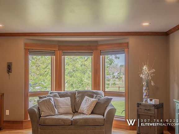 High end custom home on 3 acres just 1.5 miles from Cody, WY. Beautiful 3500+/- sq/ft home. Featuring 4 bedrooms, an open floor plan & tons of natural light. This home is extremely energy efficient. Very nice paved driveway & new custom metal siding. The huge master suite has an attached sun room with mtn views. Great landscaping, wildlife and privacy! This home is a must see to appreciate!