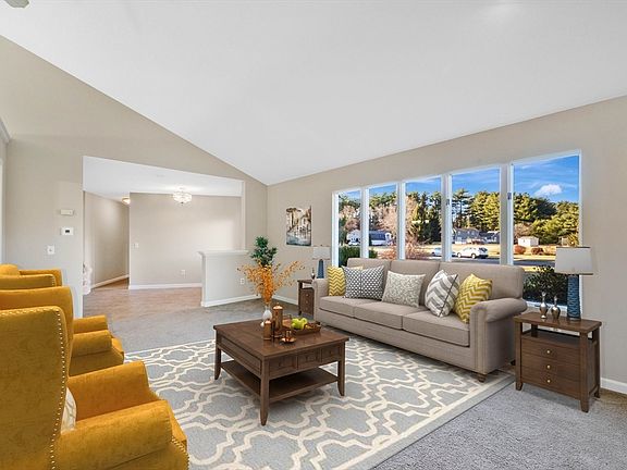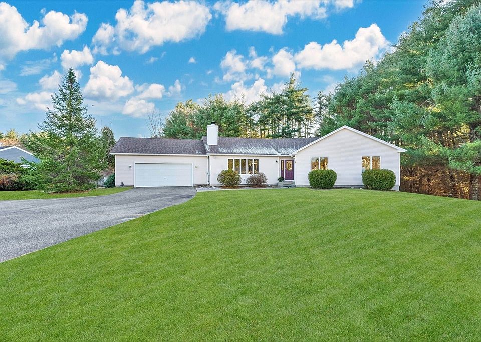 Back on Market! Welcome to one-floor living! This contemporary angled ranch is nestled on a peaceful cul-de-sac and set on 1.1 acres of wooded land. This thoughtfully designed home offers bright, open rooms with cathedral ceilings, custom deep closets for storage, and a washer & dryer on the first floor. Stay cozy by the fireplace in winter or enjoy the comfort of central air in the summer. Thoughtful updates make this home truly move-in ready. The entire home received a fresh coat of paint & the roof, deck, and garage door system were all updated in 2024. The entryway and hallway have updated lighting, the bathrooms have new vanities and plumbing, and updated stainless steel appliances in the kitchen. The beautifully landscaped yard and a new generator add convenience & appeal with a large basement that offers vast possibilities. Ideally located just 25 minutes from Amherst and 10 minutes from downtown Belchertown.