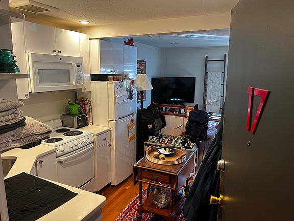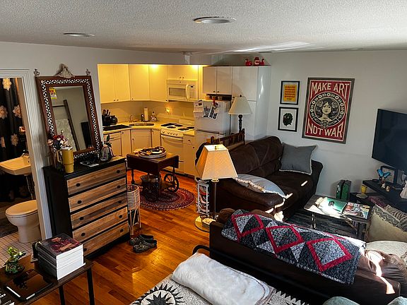 NICE JUNE MOVE!! Large (12x18) studio. The apartment is on the second floor. The Large window gets direct sun and has a wide ledge that kitty will perch on or plants will thrive on. The kitchen is in a separate corner of the main room allowing for many different layout options. Kitchen has a stove and 4 burners, a medium sized fridge. Easily fit a full sized bed, dresser, couch and coffee table in the space. The building has many long term tenants and is quiet. Dogs are OK with permission. Cats are welcome too. Hardwood floors, recessed lights, modern tile kitchen and bath. Large studio for 6/1!