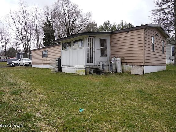North Pocono School District 3 bedroom 2 Bath Mobile Very well maintained with upgraded primary bath and brand new second bath. Upgraded steal roof. Additional living in 2 enclosed porches. Storage space with two outdoor sheds. Two off street parking spots. Close to major highways and stores. Lot Lease 400/Mth which includes water and sewer. And an application must be filled out for approval.