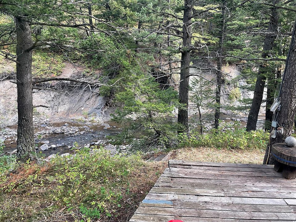 Located south and east of East Glacier Park...this sweet retreat offers many attributes. Along with the mobile home there is a creek-side stone wood-burning sauna, hot tub, outside shower, and sleeping quarters above the storage shed. A suspension bridge gets you across Railroad Creek to rest of the property on the other side. Mobile and structures are all on south side of suspension bridge so you can drive to all of them. Photo of nearest neighbors house...that house is not included in sale. This seasonal get-away is one to check out before it sells. Call Colleen Erickson at 406-226-5555 or your real estate professional.