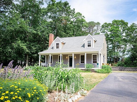 This classic cape with an enchanting farmer's porch is synonymous with beachy style and weekend getaways. This beautifully maintained cape is situated in a lovely cul-de-sac neighborhood close to the beaches and about a mile from the Pinehills where you will find golf, restaurants and shops.This home has been cared for by its current owners with upgrades and updates throughout the years. Fresh paint, inside and out, new carpeting, professional landscaping and a gorgeous, blooming garden welcomes you. Open concept first floor with hardwood floors, beautiful neutral palette and wood burning fireplace in living room. A spacious cook's kitchen kitchen and the adjoining dining area with a french door to deck overlooking a private rear yard with 7 zone irrigation system. First floor half bath with laundry hookups. Additional features include new 40 year architect style roof in 2017, surround sound, and an acoustically treated music room in the lower level. All Offers due 7/7/20 @ 5:00 P.M