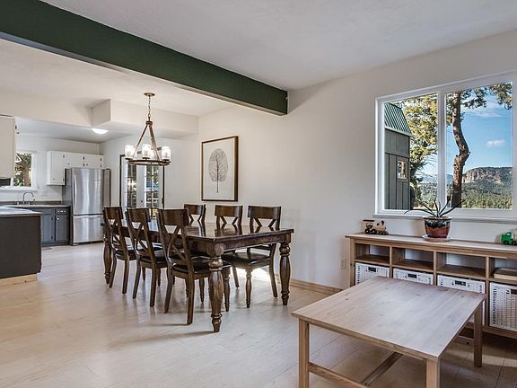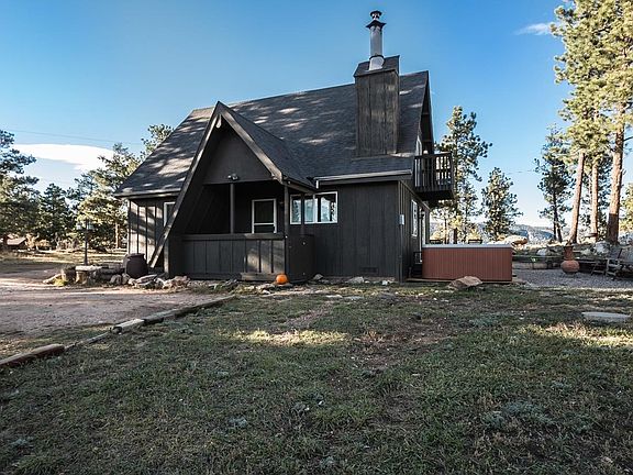 This new-to-the-market delightful home has the perfect combination of amenities: A classic mountain chalet with a youthful contemporary interior design. The views are simply gorgeous as you look towards Mount Rosalie and the awesome rock formations of Stauton State Park. Property is situated on a gentle and sunny acre with an easy driveway and an impressive out building. Special features include wood floors, all appliances, moss rock fireplace, tasteful colors, covered front deck, balcony, partially fenced, 7 year young roof, updated 200 amp electrical, hot tub, main floor laundry. Just 3 miles of easy access to highway 285 and located in the heart of friendly Burland Ranch neighborhood. High speed Internet from NETEO installed. Kids play structure included!