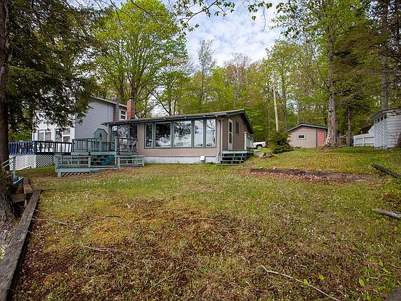 West facing charming lake cottage on a level site with 62 feet of sandy lakefront on Chateaugay Lake, a large lake in the northern Adirondacks. The open floor plan features a wall of windows overlooking wide lake views. A multi level deck opens to the lake and lawn. Vaulted wood ceilings and a wood burning fireplace provide an awesome ambiance. 3 bedrooms, one full bath and a full kitchen round out the floor plan. Close to Plattsburgh and Malone for shopping and supplies. There is a bar/restaurant on the lake which is a super nice feature. The property is ready to move in and use this summer. Give us a call and set up a viewing today.