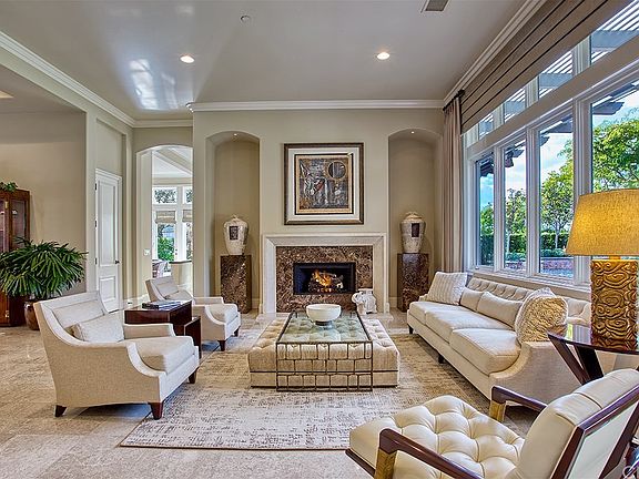 - Recessed Lighting, Built-Ins, High Ceilings (9 Feet+), Open Floor Plan, Crown Moldings
