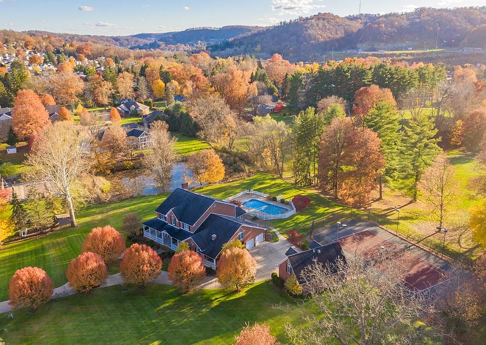 This 7,000+ sf brick home located adjacent to the Wheeling Park Golf Course is in the highly sought after Arbordale neighborhood & desirable Steenrod and Triadelphia school districts. This gem features aswimming pool, tennis court, & nearly three flat acres.This home offers a first floor master bedroom suite with a double sided fireplace, four second floor bedrooms, & two additional bedrooms in the lower level. The spacious living room leads out to a screened in porch with an outside fireplace & deck that overlooks the stunning views of your own pond. Included is a two car attached garage & also a three car detached garage with an apartment/mother-in-law suite above.
