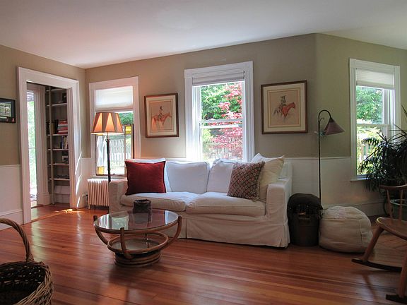 Lovely renovated 4 bedroom 2.5 bath Victorian style home in the center of quintessential Hancock NH! Walk to the historic district, cafe, Inn, artesian cheese shop, library or Norway Pond to go for a swim in the summer or ice skating in the winter! This spacious home has a wonderful flow with natural light pouring in. Beautiful wood floors and natural wood tones throughout. Formal dining room and living rooms. Recently renovated within the past 7 years +/-. Gourmet kitchen, newer roof, replacement windows and the list goes on! Plenty of room to work from home with a home office, studio or den. Bonus room off kitchen leads to the front garden. Sliders off kitchen take you to the deck overlooking the lovely back yard. Beautifully landscaped gardens with an array of blooms and foliage through the season! Abutting conservation land for privacy and serenity!