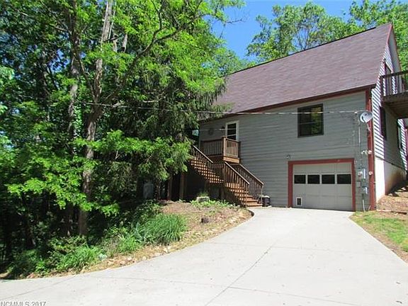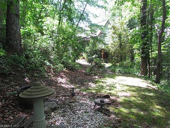 S. Asheville Chalet, nestled on 1.45 wooded ac (2 lots). This lovely 3 Bedroom 2 & half bath boast cathedral ceilings, beams and cozy fireplace. Step out to wrap-around decks to enjoy the outdoors and quiet garden spaces. The loft is perfect for artist studio or 2nd Master BR with on suite bath and separate deck/entry. Finished bsmt (264 under 7' not counted in sq ftg) perfect entertaining w/built-in bar. sink, wine frig.Enjoy privacy yet only mins to shops, restaurants and dwntn Asheville.
