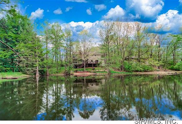 Strano & Associates - Dede Strano 618-578-8553 or Stephanie Maine 618-779-6021. Enjoy the spacious feel of this impressive custom built lakefront home. Nestled among the trees this spacious home is loaded with space. The first level offers a beautiful vaulted formal dining, living room with private deck, family room with copper top dry bar and access to the 9 x 15 screened deck with lake views, lovely kitchen and breakfast area with access to the 13 x 34 deck overlooking the lake. All upper level bedroom enjoy lake views. The large master suite is complete with a seperate sitting area, walk-in closet and private bath. Not to be missed is an upper level office/bonus room with vaulted ceilings and skylights. The walk-out lower level offers a 23 x 26 family room for added livibility and a 10 x 11 patio.