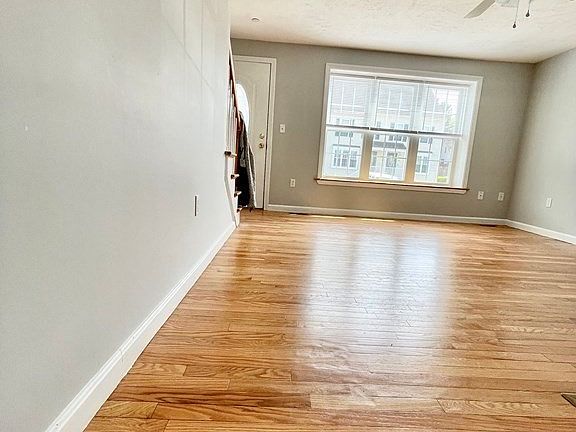 One of Brocktons best Townhouses. Second level has two bedrooms with a full bath 3rd Floor has Master bedroom and full bath . All appliances included, central air, hardwood in living room and bedrooms. Tiled floors in kitchen, dinning area and baths. Ceiling fans in the living room and bedrooms. Two assigned parking spaces.