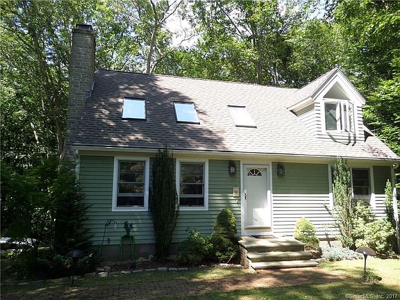 NEW PRICE.... FANTASTIC REDUCTION! This contemporary style cape is situated on a cul-de-sac offering country living in a pretty setting with babbling brook, stone walls and nature at it's best! As you step into the living room with soaring ceiling, built-in bookcases, 2nd story balcony and stone fireplace, you will immediately imagine the possibilities with this design. The kitchen features a large island and spacious eating area which leads to the deck overlooking the serene setting. There is a first floor bedroom and full bath. Second level has a master bedroom with bank of windows and master bath with separate tub and shower. The 3rd bedroom is also on the 2nd floor. When you step down to the lower walkout level - you will find a family room with a wall of cabinets and sliders to the rear patio. Don't miss out on your opportunity to live in this beach community town and all the amenities there are to explore.
