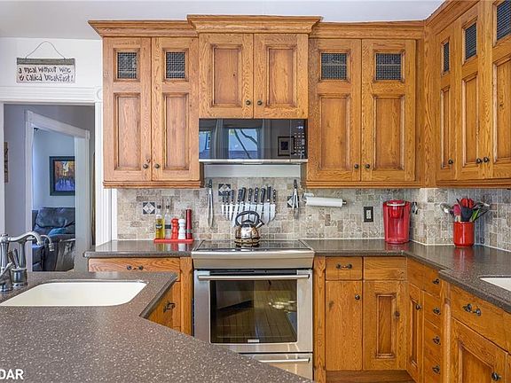 Owning a century home is about more than walls and windows; its about becoming part of its legacy and story. Step into a piece of Barrie's past with this charming 3-bedroom century home, built in 1885 and lovingly maintained and updated. From the moment you arrive, the wrap around porch, mature trees, and lush gardens set the stage for a lifestyle that blends timeless character with modern comfort. Inside, original hardwood floors carry a sense of history underfoot, and solid custom oak cabinetry in the kitchen bring warmth and authenticity, while granite countertops, a tile backsplash, and induction cooktop add a refined touch. Gas piping is also roughed in for added convenience. The heart of the home is designed for both daily living and entertaining, with character-filled spaces that invite gathering and quiet retreat alike.The backyard is a private oasis, complete with stone patio, tended gardens, small water fountain, hot tub with privacy screen, outdoor shower, and storage shed; perfect for unwinding in every season. Thoughtful updates include a bright office addition, double car garage with loft, a restored brick exterior, stone walkways, in-floor heating in the main bath, 200-amp service, and modern kitchen appliances. Practical features such as irrigation, freeze-proof outdoor faucets, and a second fridge in the garage make life here effortless. Nestled on an expansive corner lot in the heart of the city, this home offers the rare combination of heritage charm and modern upgrades, all while being steps from downtown, the waterfront, shops, and cafés. This is a home where past and present meet beautifully; a place to slow down, gather, and create your own chapter in a story that began more than a century ago.