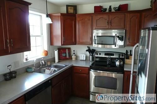 Better than new, tastefully painted home w/ HW flrs, C/A, economical gas heat & hot water, 2-car garage w/ storage alcove, daylight basement ready to finish, & all stainless steel kitchen appliances & window furnishings remaining. Your new home also offers a brick facade & plenty of landscaping. The brilliant view from your rear deck will make sunsets something to include in your daily schedule.