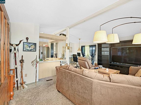 Don't miss out on this great and affordable opportunity in one of the most desired mobile home parks in Concord! This well maintained home is move in ready! This home features 2 bedrooms with 2 full bathrooms, a roomy kitchen, a very spacious living room, and a two spaced carport. Sit outside and enjoy some fresh air on the front porch of your new home in this quiet lovely community. This home also comes with a newer water heater, newer refrigerator, & a newer washer and dryer. Enjoy 2 community pools, 2 clubhouses, 2 laundry facilities, and 2 car wash areas! Conveniently located close to Bart, shopping, entertainment, and easy freeway access.