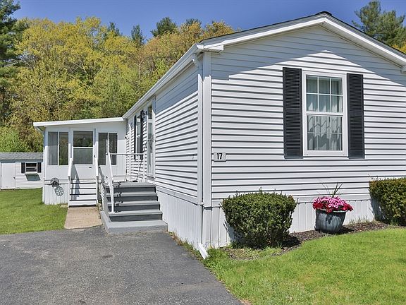 Welcome to 17 Garabed Boulevard, Marlborough, MA! Come see this immaculately well kept 2 bedroom 1 bath mobile home near Callahan State Park/Sudbury/Framingham line! Many improvements have been made including: new wall to wall carpeting/flooring, freshly painted, an updated bath, & newer roof. As you enter, you will find an 11x10 three season sunroom for your morning coffee. The relaxing kitchen has an eat-in area, crown molding/chair rail/wainscoting, SS dishwasher & an electric stove. The LR is ideal for watching your favorite sporting event. The rear main bedroom has two closets & is near the fully updated bath w/ granite counters. The front bedroom can be used as an office/craft room. There is a washer/dryer in the hall area & a shed for additional storage. You will enjoy having two AC split units in the warmer weather. HOA fee of $770 which includes taxes, water, sewer, trash, snow removal, common area landscaping. Come see this beauty! Seller can accept an offer at anytime.