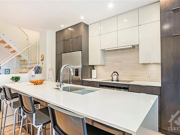 Live in the heart of Hintonburg! This 3 bedroom, 3 bathroom, semi-detached home exudes cool and architectural taste, and provides wonderful living space on 4 levels. Well integrated modern design, beautiful spaces and finishes, with maple hardwood, extensive tile and quartz throughout. Enjoy high-end appliances, and fixtures, recessed LED lighting, custom metal, maple wood, and tempered glass stairs, sustainable low maintenance landscaping, durable metal and black stained cedar exteriors. Entertain casually at the huge quartz island, or more intimately in the double height dining room. Relax on the private roof deck in the trees, or enjoy the views with friends. Excellent access to amenities, walking, and biking trails, with ready access to the LRT. Durability, energy efficiency, and comfort from high quality build and Energy Star certification. Average monthly utilities: gas $45; hydro $60; water $40. 24 hours irrevocable on all offers.