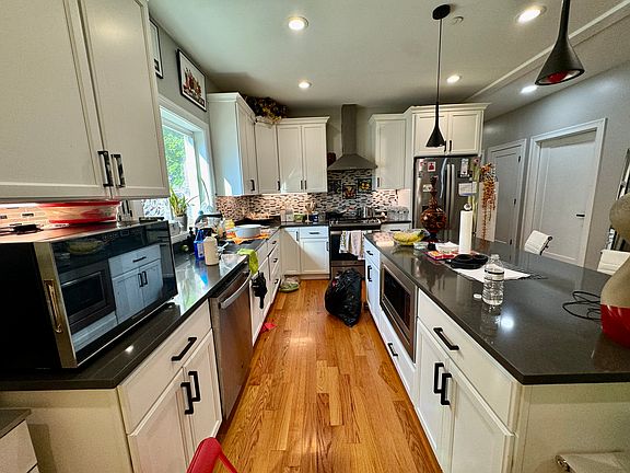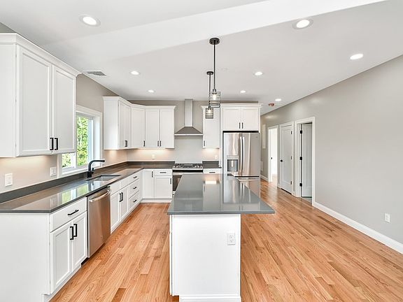 Available 8/1/25. This New Construction 3 bedroom unit has high end finishes throughout! The living & dining room is open to a wonderful Chef's Kitchen with quartz countertops and contemporary stainless steel appliances. The natural hardwood floors and high ceilings in every room add a luxurious touch. The primary suite includes a spa-like bathroom with a grand shower that has custom glass doors, floating vanity with double sinks and a spacious walk-in closet. Laundry in Unit. Off Street parking. Storage in Basement. Central A/C.