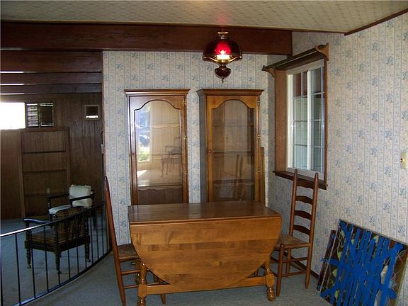 Charming barn red house with white trim all polished up and ready for new owner. Tile in kitchen and bath room, separate living and family rooms both with fireplaces, and sparkling in-ground pool for summer fun.