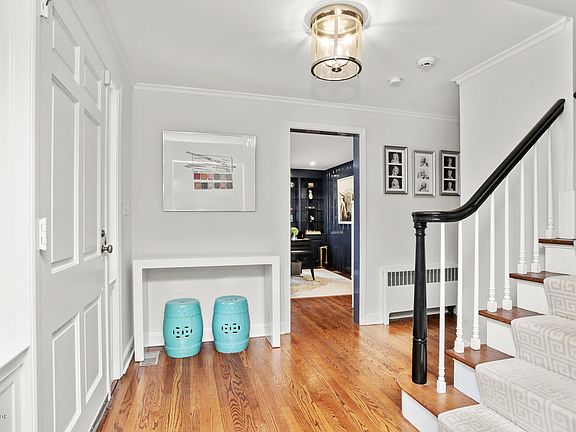Tastefully renovated to the latest standards, the five bedroom home has all the luxuries you need and more. The cozy colonial has a perfect flow for family living and entertaining. The family room with full wet bar, double height ceiling and a welcoming fireplace is conveniently located adjacent the open eat in kitchen. The large living room with surrounding windows is beaming with light. There are 4 bedrooms on the 2nd floor including a large master suite with recently renovated bath and heated floors. On the first floor there is a guest or Nanny bedroom with full bath and office. The oversized fenced in yard has an outdoor kitchen with fireplace for all season entertaining. To top it off it is on a quiet private lane with an easy walk to schools and train.