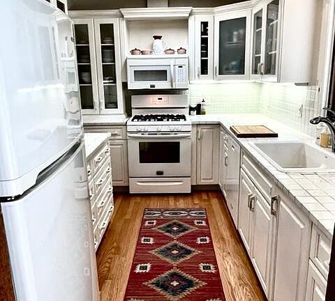- Description: Galley style, white sun-filled kitchen w/views!