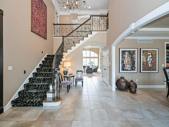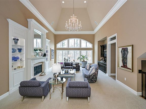 - Breakfast Bar, Breakfast Room, Kitchen Island, Custom Cabinetry, Eat-in Kitchen, Granite Counters, Walk-In Pantry, Central Vacuum, Separate Dining, Sauna, Workshop/Hobby Area, Sound System, High Speed Internet, Double Vanity, Separate Shower, Bookcases, Coffered Ceiling(s), Special Millwork, High Ceilings, Walk-In Closet(s), Bar, Two Story Entrance Foyer