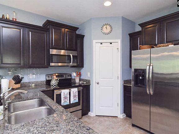 This 3BR/2.5BA home has a great open floor plan with 9' ceilings, a large open great room, an eat in area with newer laminate floors, and a spacious kitchen with granite countertops, stainless steel appliances, and even a music port w/ built-in ceiling speakers! Upstairs you have a laundry room and all 3 bedrooms including an over-sized Master Suite with a HUGE walk-in closet, private bathroom with dual vanity, framed mirror, and separate garden tub & shower! Backyard backs up to private wooded area. HOA $175 a year. Conveniently located to I-77, I-20, Fort Jackson and plenty of dining and shopping.