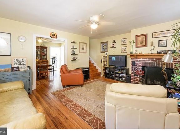 Charming twin on one of the nicest streets in Radnor Township! Enjoy thunderstorms and morning coffee on the spacious front porch. 1st floor boasts living room with beautiful hardwood floors & brick fireplace, dining room with hardwood floors, eat-in kitchen that was remodeled about 17 years ago as well as 1st floor powder room. Upstairs you will find a master bedroom along with 2 other bedrooms (all with hardwood floors) served by a hall bathroom. The finished basement with French drain adds even more sqft yet & also contains the laundry. Sliders out back lead to deck overlooking a perfectly manicured back yard with a privacy fence on one side and an open lot on the other & a shed. Other amenities include replacement windows, a short walk to Clem Macrone Park, Radnor School District and an extra wide street making for a fantastic location!