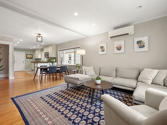 Discover this stunning 2 bed/1 bath, perched above a lovely tree-lined street in West Somerville. Spanning ~1000 sq ft, this top floor residence boasts incredible sunlight, open living, dining, kitchen, & THREE outdoor spaces. Step through your private direct entry & head upstairs, where you’re greeted w/ a mudroom/closet & a one-of-a-kind, expansive front porch. Inside, you’ll love the bright, open FP, anchored on two sides w/ massive picture windows. The generous kitchen boasts granite countertops, s/s appliances & a peninsula. Enjoy your morning coffee or date night on your covered back porch. The property enjoys 2 great-sized bedrooms, a tiled bath w/ tub & ductless A/C in the common area & each bedroom, & in-unit laundry is tucked away, plus bsmt storage. Common fenced patio in back w/ turf for low maintenance & EXCLUSIVE USE of driveway (4 cars!). Close to Teele & Davis Sqs (Red Line), Tufts Univ (Green Line), shops & restaurants, this home is a true West Somerville gem!