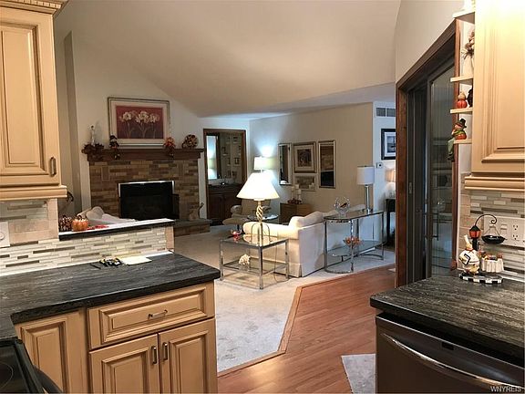 Beautiful Wooded setting off Lower Mountain Road near Gothic Hill par 3 golf course & 8 minutes to South Transit. Ranch Style Patio Home/townhouse built in 1981. 2 bedrooms each w/ en-suites, each having glass sliders to a patio and walk in closets. Open floor plan great room with skylight, cathedral ceiling, large gas FP w/remote start & wet bar. Loft for guest area & home office. Newly remodeled kitchen with all new appliances within three years. 1st flr laundry including washer and dryer and pantry cupboards. 3 season room off great room with patio entry. Fenced in patio entryway for privacy and family gatherings. Attached 2 car garage with new insulated garage door and opener. Partial full height basement plus partial 4 foot crawl space for extra storage. Ask owner about HOA Amenities