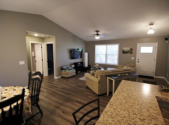 Like new home built in 2016! 3 bedroom 2 bath slit floor plan with vaulted ceilings in the living/dining area. located in desirable Holy Springs! Two car carport, spacious porch to sit outside and enjoy nature. High grade laminate throughout and tile in the baths. Appliances do not convey