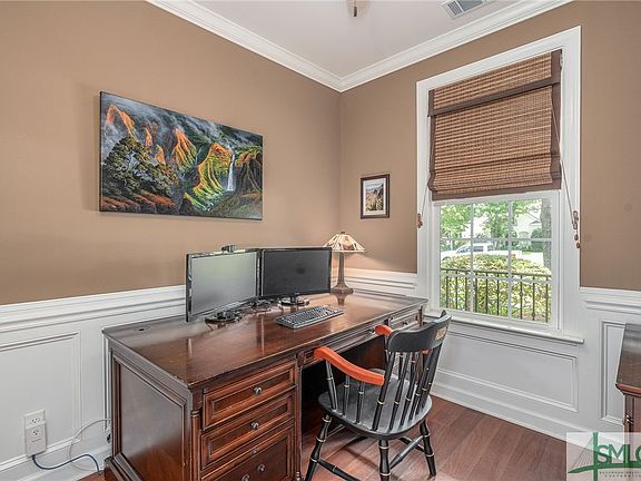 Enjoy lakeside living at its finest in the highly desirable Southbridge community, only minutes from I-95, I-16, Gulfstream and the airport. This well maintained custom built all brick home features over 4700sf of living space with master on main and 4 additional bedrooms PLUS Bonus upstairs. Its free flowing floor plan is ideal for entertaining guests from the inviting foyer to the sunlit living room, with the kitchen being the center point of the home. Recent updates include a customized master bath with dual vanities, oversized shower, soaking tub, and walk in closet with optional laundry connections. Designed for relaxation and outdoor living, the screened-in porch and patio area are the perfect places to unwind and take in the beauty of the surroundings. The 3-car garage, spray foam insulation and a new roof truly set this home apart from all the rest. Don't miss your opportunity to enjoy the lifestyle and convenience that this home and resort style community have to offer.