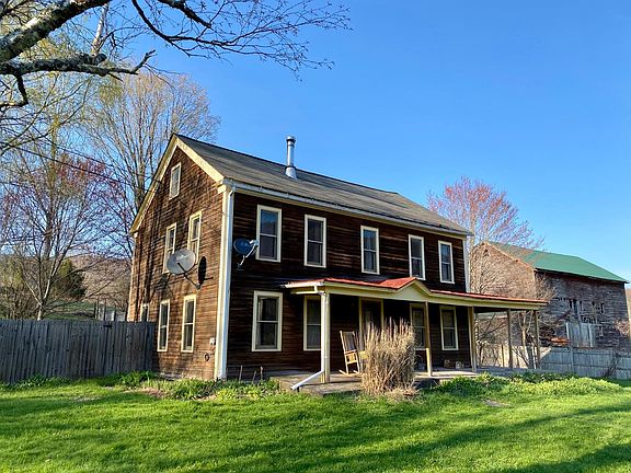 Built in the 1820's this charming farmhouse has all the character you are looking for in a country home. Two bedrooms (potential 3 bedroom) and one bathroom this house sits on a 3.9 acres lot that is bordered by NYC Land and a small stream. The interior of the home has an open floorplan with the original post and bean structure exposed, and the original wide plank wood floors. The kitchen has an old farm sink adding to the charm of this property. The two bedrooms are on the second level with the master bedroom ceiling vaulted. The second bedroom is large enough to put up a wall to create a third bedroom both of which would be generous in size. This second bedroom is so large that you can split it and create a third bedroom with just a wall separating the two.Also, on the property, and close to the main house is a small out building that would make for a great writers or artist studio. A beautiful private patio just off the kitchen is a great place to entertain guests. From the covered front porch, the mountain and valley view is calming very relaxing. Some lovely perennial gardens surround the house with decades old lilacs, lilies and daffodils.There is a raised bed for planting your fresh herbs and vegetables. One of the most interesting characteristics to the property is the family burial plot gong back to the original owners. The headstones and wrought iron fencing are still very visible. Behind that serene area is the small stream with a relaxing and tranquil sound of the flowing water. This is a property not to be missed.The proeprty is located close to the popular village of Margaretville and the hamlet of Roxbury. Plattekill and Belleayre are within 20minutes to the property. he Hanna Golf course is just 10 minutes down the road. There are plenty of outdoor activities like hiking, kayaking, canoeing, fishing, and biking. And one of the most popular local farm markets, the Pepacton Farm Market, is just a 10 minutes away.