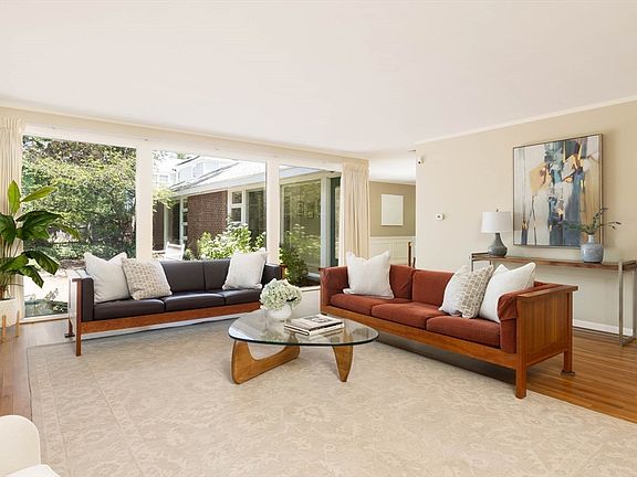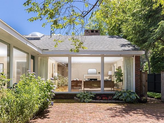 Rare offering. Gray Gardens East. Gorgeous tree-lined west-Cambridge residential side street, short distance from Smithsonian at Harvard, Harvard Law School, Harvard Square, & Red Line to MIT, MGH, & Boston. Live comfortably on 1 level in architect-designed, contemporary, light-filled house close to everything. Brick construction. Supersized windows integrate beautiful interior & exterior spaces, spacious patio & landscaped gardens. Configuration provides exceptional privacy. Excellent use of space, cross-ventilation, lovely views, fireplace, central AC, oak floors. Elegant mid-century aesthetic. LL has 676-s.f. semi-finished area with full bath, separate from 762 s.f. utility room. None of LL is included in the residential square footage. LL might have potential as recreation room, workout space, good-size workshop, and storage. Direct-access garage is generously proportioned; 2nd full-size parking space directly in front of garage entrance.