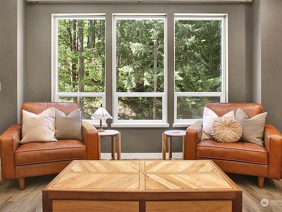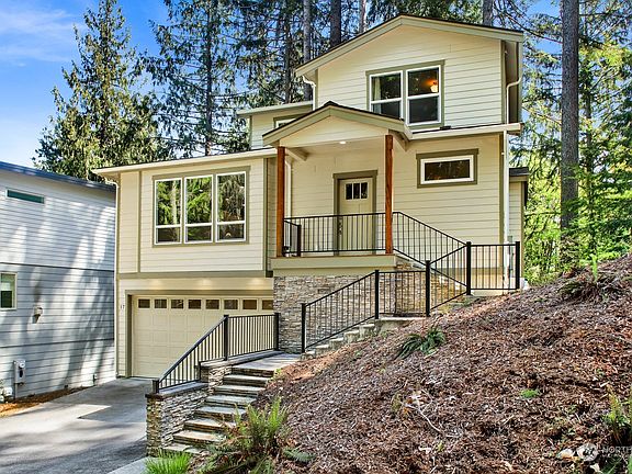Welcome to Gate 3 of Sudden Valley! Beautifully maintained newer build with new interior paint, large windows and sliding glass door off of kitchen, leading out to spacious upper deck. Main level includes primary bedroom with walk-in closet & ensuite 3/4 bath. Lower level includes garage with workbench & builtins, plus storage & laundry space. Upstairs has two additional bedrooms & full bath. Close to Sudden Valley amenities - golf course, Stimpson Family Nature Reserve - and 20 minutes to downtown Bellingham.