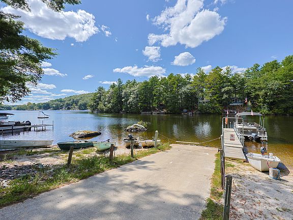 Discover the charm of island living at Quaddick Lake! Seize this RARE opportunity to own a lakeside retreat on a private island dotted with just 12 seasonal cottages. Set just off the lake shore, this enchanting getaway offers the best of both worlds--unforgettable sunrise and sunset views, plus TWO waterfront areas providing 200 ft. of direct lake access on both sides of the island. The fully furnished cottage blends cozy and modern comforts, featuring two bedrooms, full bath, kitchen, living and dining areas, plus cooling and heating options. Updated windows flood the home with natural light. Extra storage and a workspace are located under the sunroom/guest bedroom, with an additional shed on the property. Step outside to gather around the firepit with Adirondack chairs, host summer meals at the custom 12-seat picnic table, or grill under the glow of thoughtfully placed exterior lighting. Convenient outdoor shower with private changing area is a favorite feature. Expansive decking provides the perfect place to relax and take in the views. Floating and stationary docks, boat launch, kayaks, and rowboat ALL INCLUDED with sale -- PLUS a second adjacent parcel (.11acre) makes this a double-sized lot. This private side of Quaddick Lake offers endless recreation-- speedboats, waterskiing, jet skiing, kayaking, paddleboarding, or fishing right from your own docks. PLEASE NOTE TOTAL SQ. FOOTAGE IS ACTUALLY 840 WITH 2 ENCLOSED PORCHES. Pontoon boat transport provided for showings. For all ages, the island brings a magical sense of freedom and adventure with wooded paths to explore, docks to leap from, and evenings that bring simple joys of s'mores by the fire under starlit skies. There is a wonderful sense of comraderie and helpfulness amongst the islanders and most of all, the potential for memories made to last a lifetime!