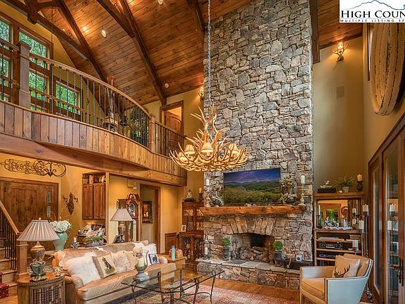 Luxurious & Quailty built mountain estate nestled within the Glens of Grandfather just minutes to the Profile Trail at the base of Grandfather Mountain. This stunning 5000+ sq ft home has a total of 4 en-suite bedrooms, 5.5 bathroooms, 4 fireplaces, a full bar with den, outdoor dining space & beautiful grounds complete with waterfall/stream feature & firepit. Enter into the great room with vaulted ceiling & gorgeous stacked stone fireplace. Spacious kitchen with high end cabinetry & granite, Viking appliances, large custom pantry & two dining areas. The primary bedroom is on the main floor & has a fireplace & sitting area. Upstairs are 3 en-suites one of which could be used as a playroom/gym - it is HUGE & above the 2 car garage. The basement has a cozy den with stately bar, two bonus rooms, 5th full bath & a large storage/mechincal room. Plenty of outdoor decking with a great mountain view & outdoor fireplace perfect for entertaining! The grounds are beautifully lanscaped, offering privacy & space to play/relax outside. Just minutes from Tynecastle Shopping, Sugar Mountain & downtown Banner Elk.. this property offers a great location & easy access. Furnished less exceptions.