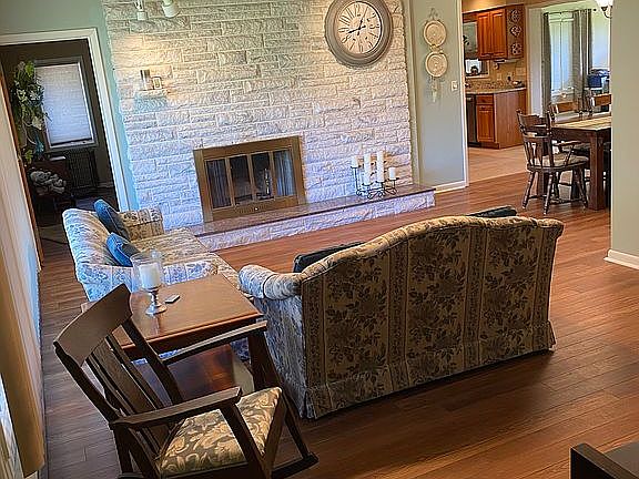 Looking for a home close to the lake and walking path, this is for you! Home sits on a large lot that backs up to a lake park. Solid brick ranch home with 3 bedrooms, 2 1/2 baths and a finished basement. Beautiful kitchen with cherry cabinets, granite countertops, large island and new slate appliances. Beautiful sunny spacious family room w/soaring ceilings and a view of the back yard. Living room has wood burning fireplace. Master bedroom has a spacious bathroom with step in shower. All new luxury vinyl plank flooring on main level and in the basement. Bathrooms and kitchen have ceramic tile flooring. Finished basement has bedroom, rec room, kitchenette and half bath.