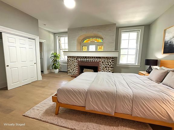 This beautifully updated studio apartment combines modern finishes with historic character. The highlight of the space is a stunning stone fireplace accented by a stained glass window, bringing unique charm and warmth to the home.