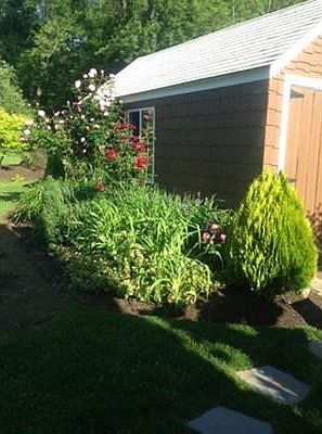 This home has an organic feel to it with all the natural wood and meticulous landscaping. All the work has been done. Newer roof, chimney re-capped, (upgraded) siding, windows, electrical, lighting in and out, total bathroom,new composite deck, beautiful fire pit, garage/shed with power recently re-shingled and roofed along with a brand new mud room added to the back. The yard is BEYOND words. You must walk through the park-like grounds to get a true appreciation for it! Over the past 5-6 years there has been so much work done to this home.