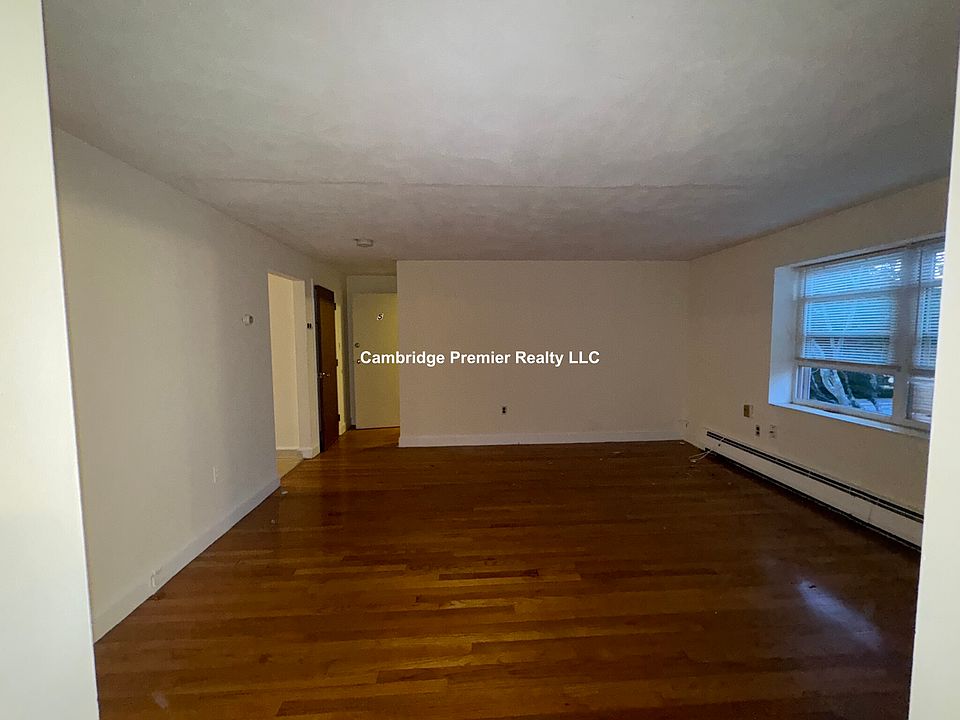 Bright one-bedroom in a small building with large living room, spacious bedroom with closet, eat-in kitchen, and full bath. Features hardwood floors and plenty of natural light. Laundry available in adjacent building (same complex). Rent includes heat, water, and one parking space.