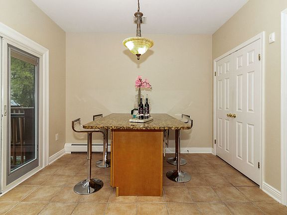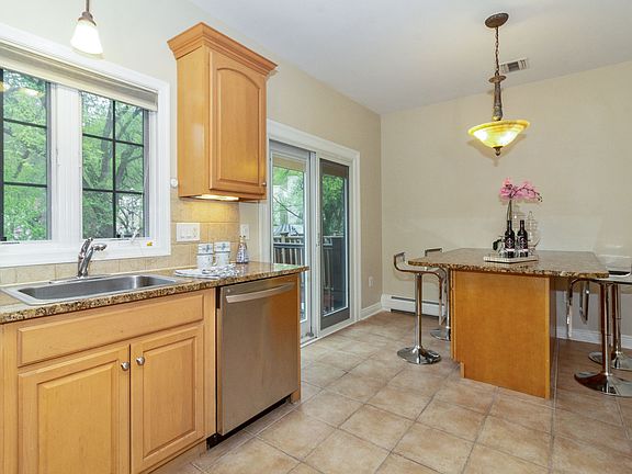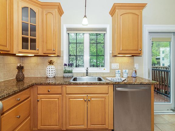 Beautiful St. Lawrence Estate in Weehawken. 3 bed 2.5 bath plus den with skylight. The kitchen features granite counter tops, pantry closet, dishwasher, stainless steel appliances, and breakfast area. Ample amount of closet space throughout the whole home. Large dining room and inviting living room with triple bay window create a lovely well-lit living area. Crown moldings, central AC and baseboard heat, and powder room complete the living space. Vaulted ceilings and ceiling fans, and hardwood floors throughout apartment. The elegant master bathroom features Jacuzzi tub, designer bath & custom tile and fixtures. 2 car parking (one garage and one driveway), NO HOA FEES, extra storage in the attic, and a maintenance free backyard! The backyard and deck are the biggest in the whole complex. There are security cameras all throughout the property.