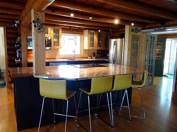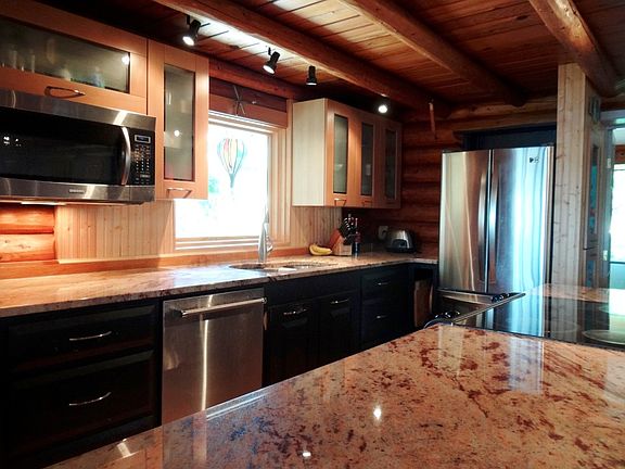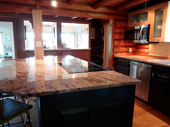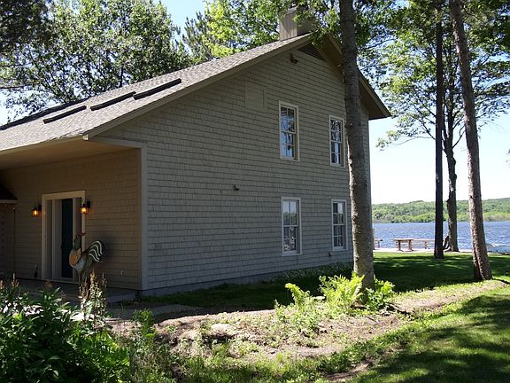 Enjoy the best of both worlds with this premiere 3BR 4BA waterfront home on Portage Lake! The original portion of the home is a custom, vintage log home featuring a charming original fireplace and modern kitchen with granite countertops and large granite island, as well as stainless steel appliances. With an open floorplan, this all extends into the spacious newer addition with a great formal dining area and living room, all with fantastic views of the lake. There is an additional private living room/study with a marble fireplace and bookcases overlooking the lake as well. You'll appreciate the gorgeous solid cherry floors with birdseye maple and walnut accents. Up above, two large bedrooms enjoy an elevated view of Portage Lake, and each with their own bathrooms. The master bathroom has a huge skylighted walk-in closet and full bath with jetted tub. The third bedroom features an attached half bath as well. The south entrance to the home features a unique passive solar atrium/sun room. Just under 4,000 square feet of living space! This is a fantastic house for entertaining! Outside you'll find a two car garage, a nice boat house, a garden shed, and a brand new high end custom sauna sitting right on the shoreline with windows overlooking Portage Lake! All this on 100 feet of frontage on the most desirable lake in the area, where you can enjoy swimming, boating and world class fishing for walleye, pike, perch, panfish and more. The home was designed for efficiency, and is connected to township water and sewer, natural gas, and broadband internet. Very quiet on a dead end road. This is as good as it gets on Portage Lake!