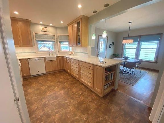 This lovely one story home has been well maintained and is in a convenient eastside location. The cozy front porch welcomes you and is a perfect spot for sipping your morning coffee. The entry has a unique glass block accent wall that lets the light in while providing privacy. Inside you will find hardwood floors throughout most of the home along with an attractive gas fireplace in the spacious living room. The modern kitchen has everything you'll need, tons of counterspace, beautiful cabinetry, breakfast bar and an attached dining room. There's loads of natural light making the home feel warm and bright. You'll also appreciate the charming details like the arched doorways and built-ins. This home utilizes the space very well and has a great layout. Other features include: central air, large useable basement and off street parking with garage. Make your appointment today, this one won't last!