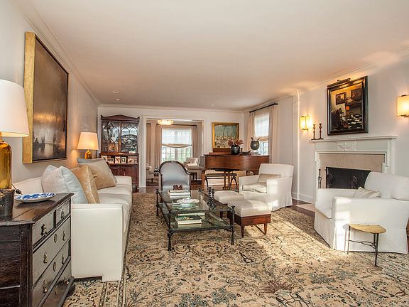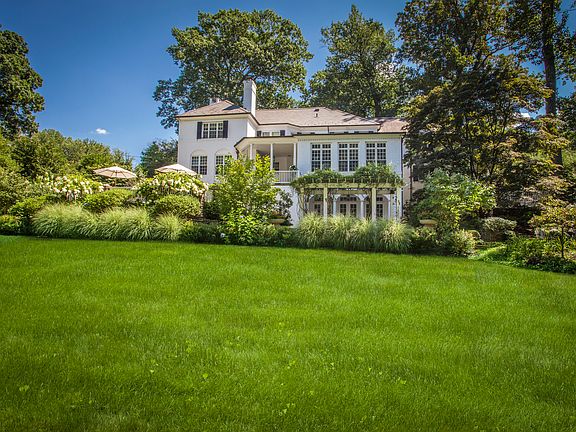 Exquisite colonial in the heart of Fox Meadow on a meticulously manicured .67 acre with specimen plantings and beautiful patios. This home was restored and renovated in 2002 using the design and architectural services of Alisberg Parker. A lovely entry leads to a formal living room with fireplace and attached sunroom with gas fireplace and a formal dining room. Large eat-in chef's kitchen featuring Viking oven and stove, Sub Zero refrigerator, 2 dishwashers and warming drawer. Family room overlooks backyard and has French doors to a covered terrace for barbequing. 5/6 bedrooms and 4 baths on 2nd floor. Walk out lower level with French doors leading to a large elegant stone patio excellent for entertaining. 2220 square feet of lower level space is included in house calculations and includes a family room with fireplace, playroom, powder room, media room, wine cellar and laundry. Speakers throughout. Close to elementary school, high school, town and train.
